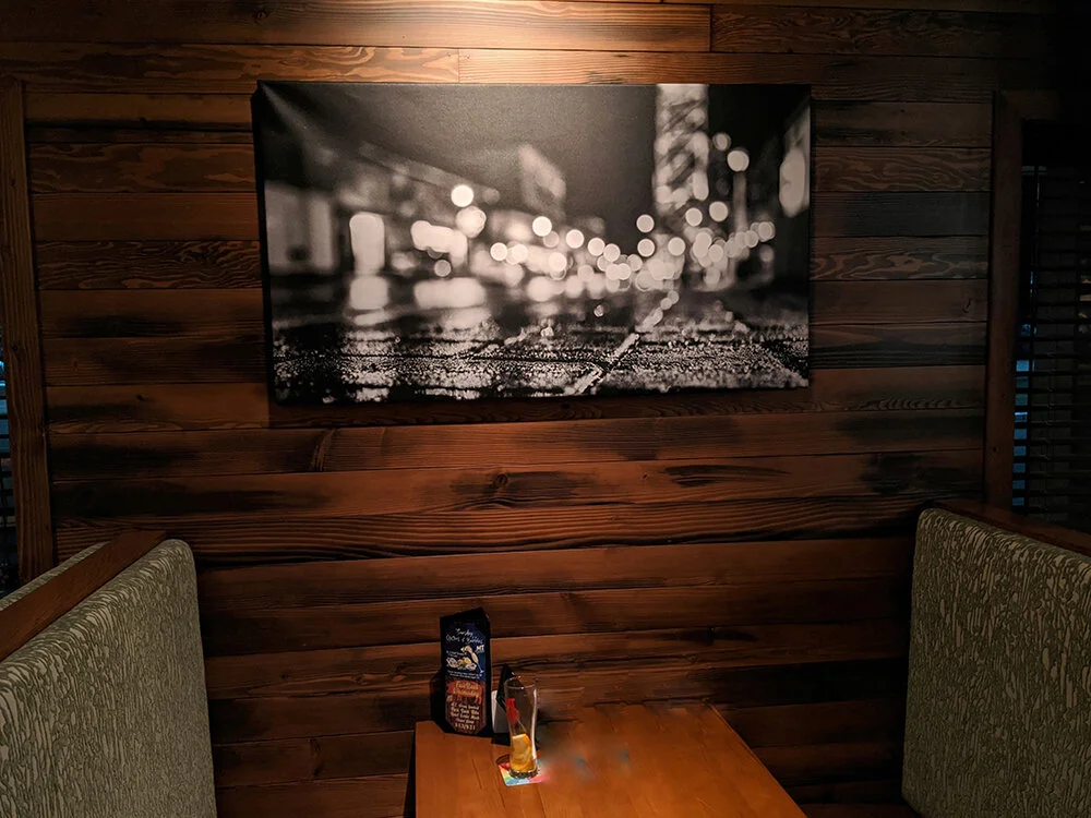 Canvas prints in the renovated dining room at MT Bellies Welland
